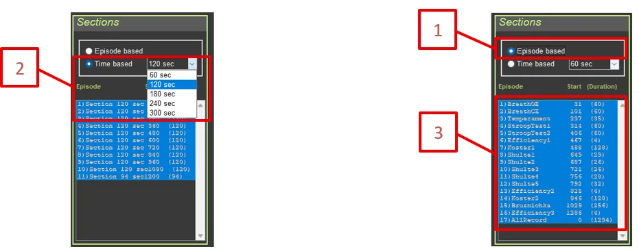 - Section split by episodes or fixed time intervals