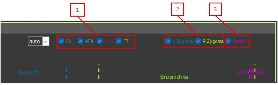 - F8, AF4, AF3, F7 (EEG)