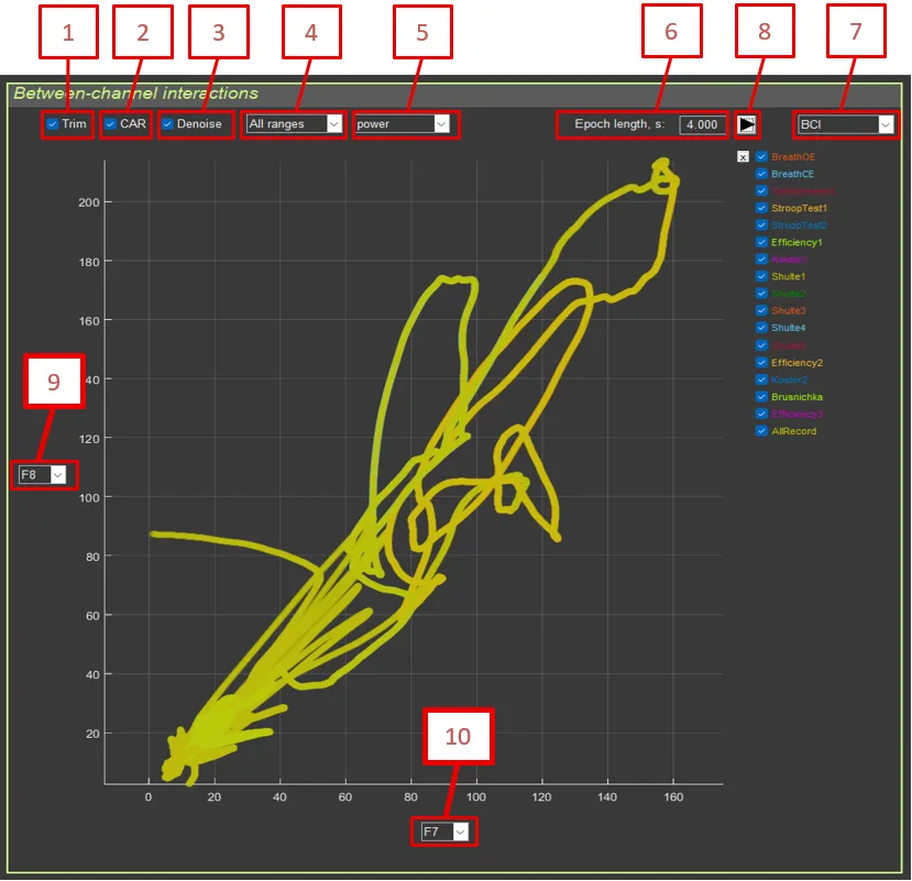 - Mode selection: Power by sections / Between-channel interactions