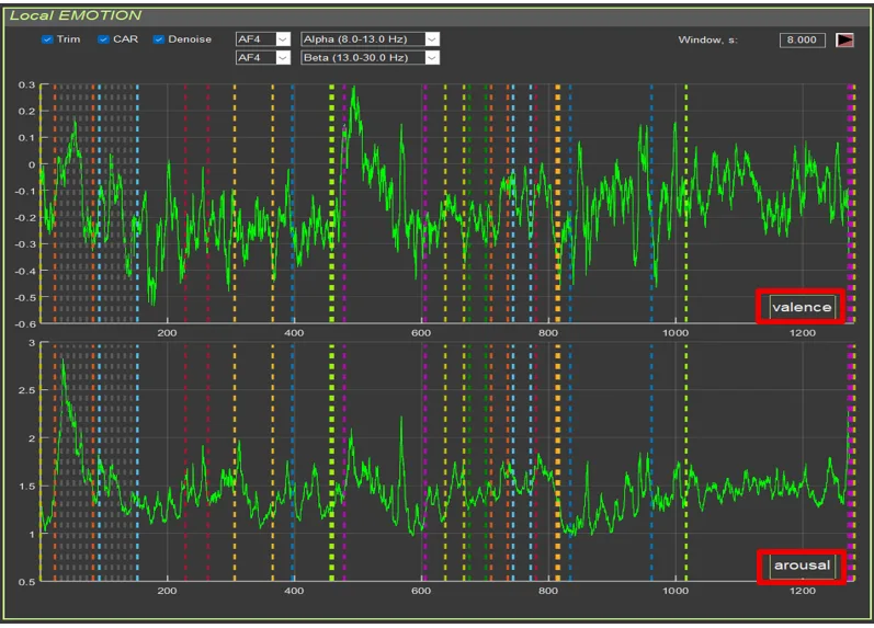 - Valence: valence time series (green line)